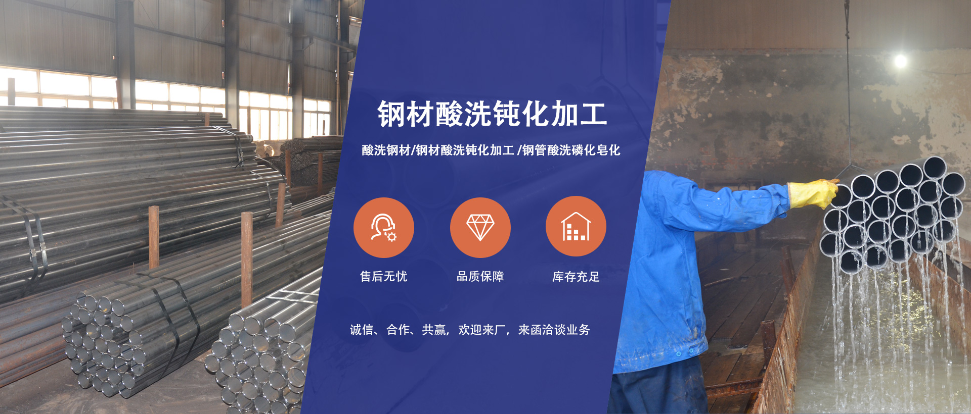 本公司主要產品:鋼材酸洗鈍化加工、鋼管酸洗磷化皂化、無縫鋼管酸洗防銹加工、紡織機械用管等我們的優勢